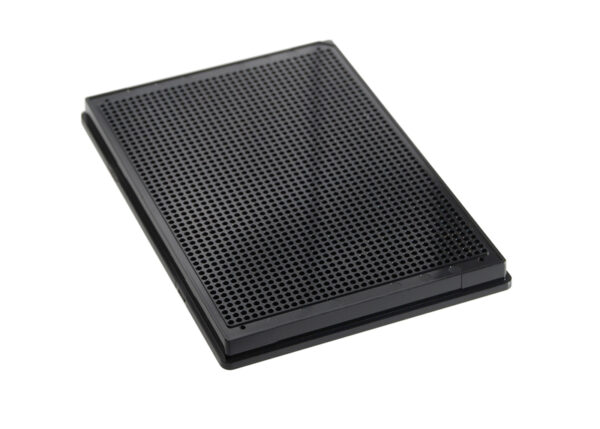 1536 Well MaKO plates are available in Black, White or Clear with solid-bottoms or 100 micron-thick film bottoms. 1536 Well MaKO plates have round wells and a HiBase configuration. 1536 MaKO plates have a built-in Evaporation Barrier (EB) row of wells surrounding the assay well field that can be filled to help prevent differential liquid evaporation from the edge wells. 1536 MaKO have built-in alignment fiducials used in Acoustic Dispensing systems. 1536 MaKO plates are available Tissue-Culture Treated for assays using cells with a small bottom surface area (1.85mm2).. The film-bottom configurations are ideal for fluorescence assays. 1536 Well MaKO plates have low-dead-volume characteristics (total useable volume 8.75μL). All Aurora plates are available with standard or customer bar-coding.